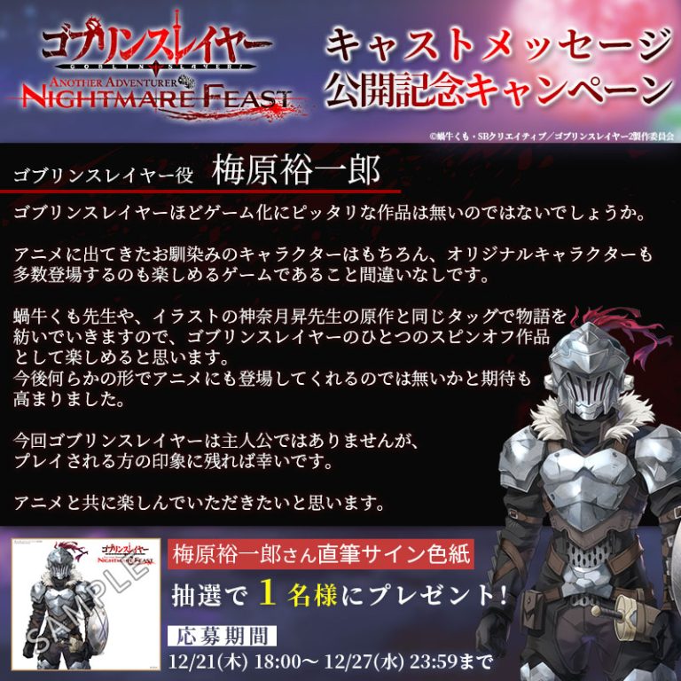 さらに、これを記念してゴブスレNF公式X(@GoblinSlayer_NF)にて、梅原裕一郎さんの直筆サイン色紙が抽選で1名様に当たるリポストキャンペーンを開催!